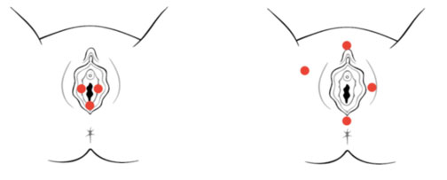 Provoked Vestibulodynia (PVD) (left) vs. Generalized Vulvodynia (GVD) (right)